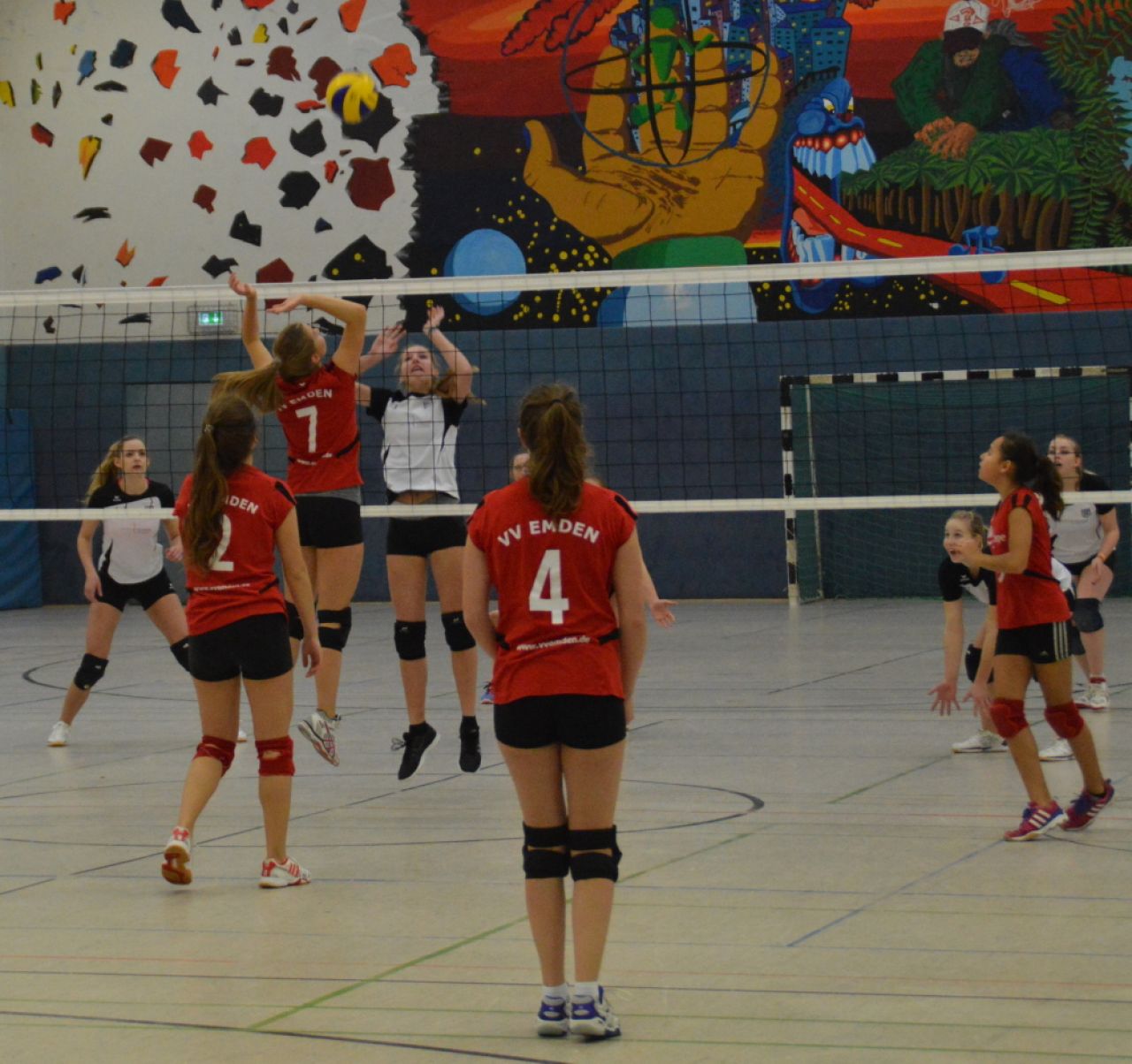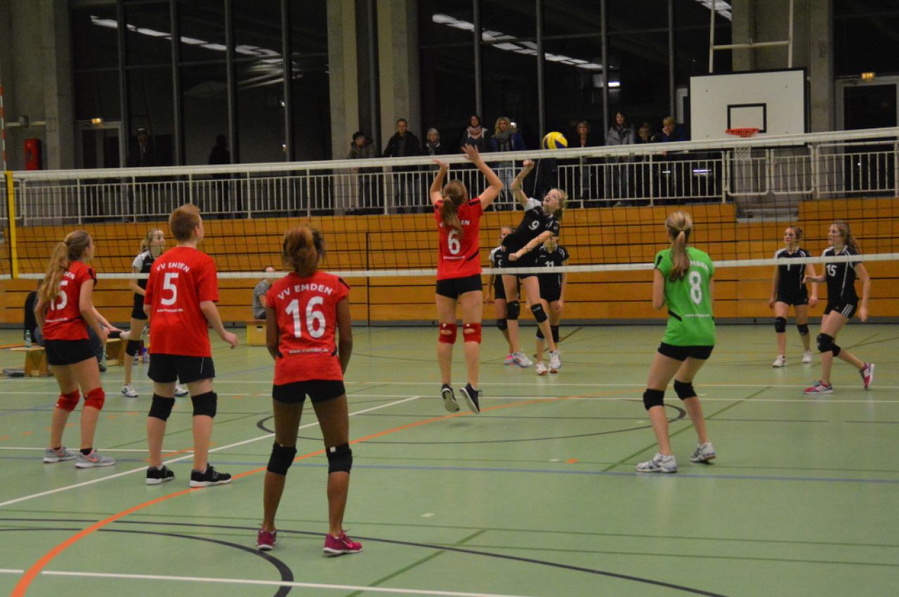 Genau wie die 1.Damen des Volleyballvereins Emden, des VVE, hatte der TuS Leerhafe-Hovel vier Siege mit 12:0 Sätzen und 12 Punkte auf dem Konto. Es war somit das Spitzenspiel der Bezirksliga. Zunächst musste Leerhafe-Hofel aber gegen die VG Aschendorf-Papenburg antreten. Dieses Spiel dauerte 2 Stunden und Leerhafe-Hovel gewann knapp mit 3:2 .