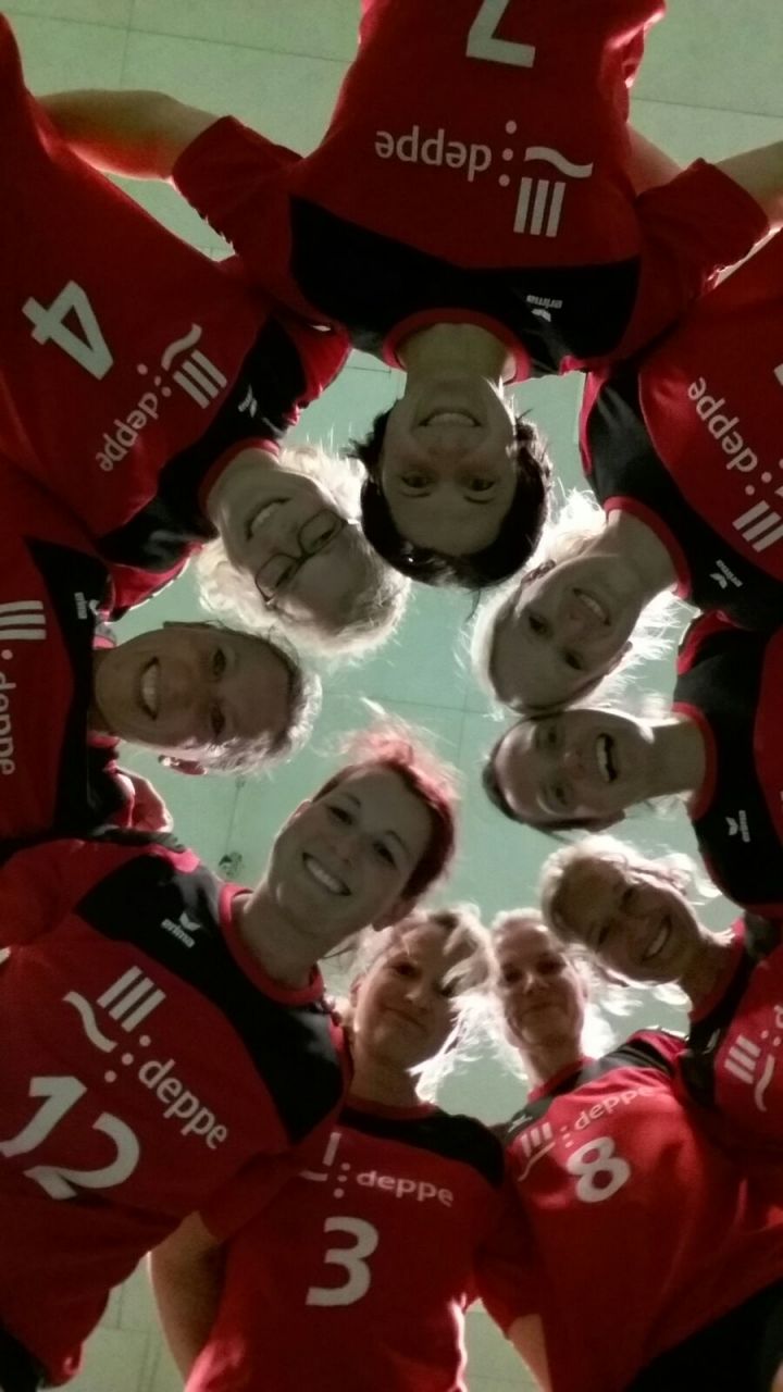 Im 3. Satz wurde das halbe Team ausgewechselt, was reibungslos funktionierte. Jede Position beim VVE ist doppelt besetzt und mittlerweile ist das Team sehr gut eingespielt. Bis zum 12:10 konnte sich keine Mannschaft absetzen, aber danach lief es wie in den Sätzen zuvor. Die guten Angaben, die hervorragende Blockarbeit, das variierende Zuspiel, der harte Angriff und die gute Feldabwehr führten zum 25:17 Satzgewinn der VVE-Damen. Jetzt haben die VVE-Damen gut Lachen, denn nach fünf Spielen stehen sie mit 15 Punkten ohne Satzverlust an der Spitze der Tabelle..