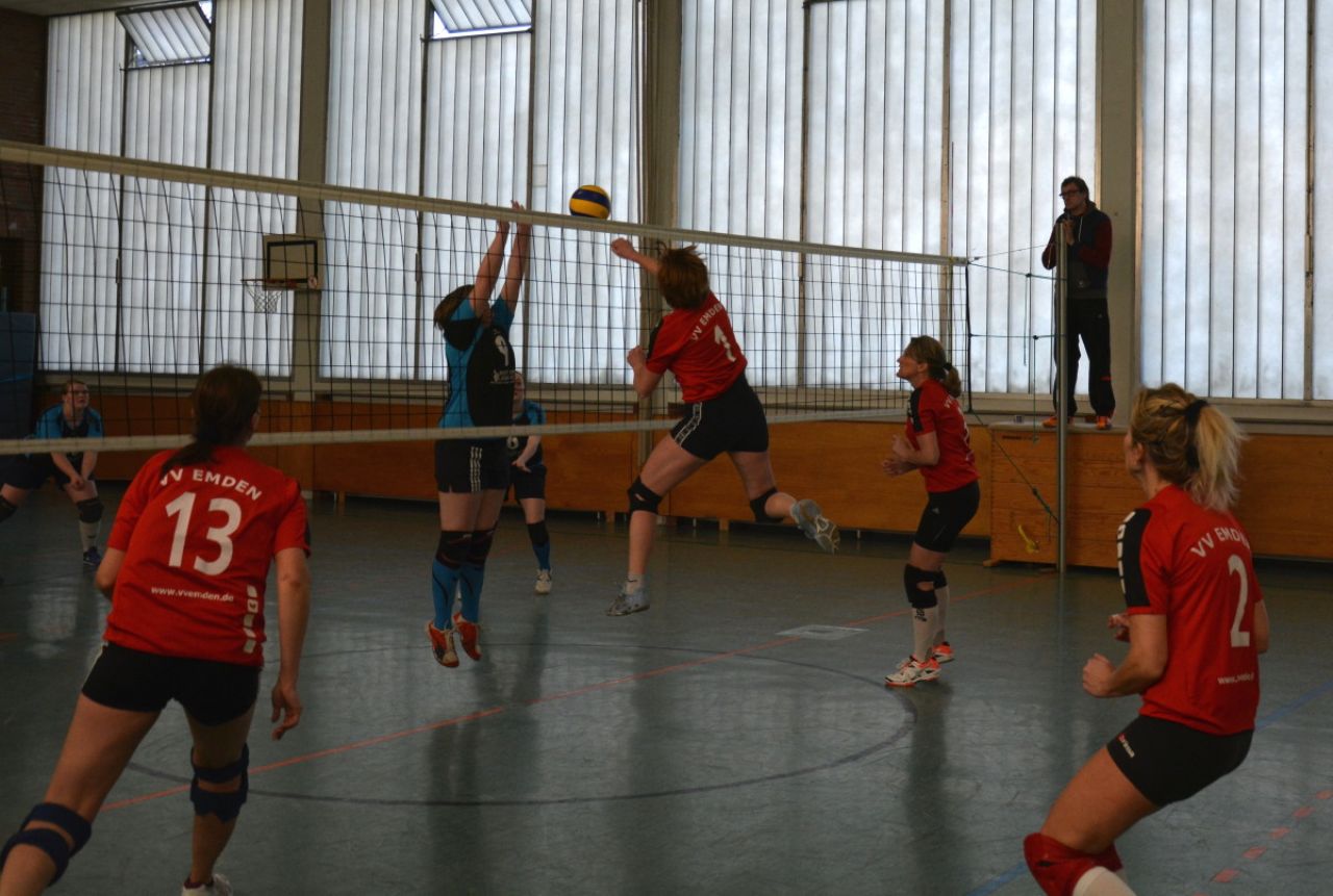 durch einen Satzgewinn etwas ärgern. Dennoch reisten die schon vorzeitig feststehenden neuen Meister ganz entspannt an. Anders hingegen dann auf dem Spielfeld – wie zumeist starteten die VVE-Damen nervös und etwas unsicher. So verlief der erste Satz lange Zeit auf Augenhöhe. Spannende und gelungene Spielzüge auf beiden Seiten. Erst gegen Satzende konnten sich die VVE-Damen durch gute Angriffe und Blockarbeit absetzen und den Satz mit 25:19 für sich entscheiden. Aber Ruhe kehrte immer noch nicht ein im Emder Spiel. So lag das Team im zweiten Satz sogar mit 0:6 zurück. Eine Auszeit sollte Ruhe in die Annahme bringen – erfolgreich. Mit druckvollen Angriffen, insbesondere immer wieder über die Mitte mit Silke Aschhoff kämpften sich die erfahrenen Emder Damen Punkt um Punkt wieder ins Spiel zurück. Beim Stand von 14:15 dann eine tolle Angabenserie von Denise Jänicke. Die Burhafer Damen fanden einfach keine Mittel gegen die druckvollen und flach über das Netz geschlagenen Angaben. Mit 25:15 wurde auch der zweite Satz gewonnen. Im dritten Satz hatten sich die Burhafer wohl schon etwas aufgegeben, beim 25:12 gab es kaum noch Gegenwehr. In nur 56 Minuten beendeten die VVE-Damen eine tolle Saison! 16 Spiele, 16 Siege, 45:2 Sätze…beeindruckend. Und nächstes Jahr dann in der Bezirksliga – mal schauen, was dann geht.